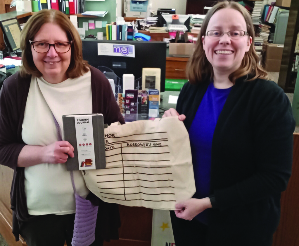 Lori Waters, left, receives a prize package from Negaunee Public Library Director Jessica Holman. Waters won a reading journal and tote bag as part of the 2025 Readers Dozen Book Challenge. The library is holding another challenge for 2026. Participants are challenged to read a book according to a different theme every month for a year. The challenge is open to adults and any youth who can read independently, and is free. Residency is not a requirement. To register, please visit the library by noon today or call the library at 906-475-7700 extension 18, or fill out the form at https://forms.gle/SNisfznxiPjRbXDT8. (Courtesy pgoto)