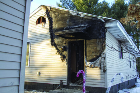 The south side of a house that caught fire in Wells Township on Saturday is shown. (Escanaba Daily Press photo)