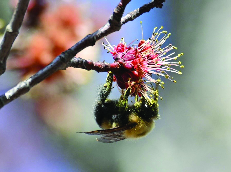 An area bumble bee is snacking on a flower Sunday in a very early spring environment in the Ishpeming area. (Photo courtesy of Victoria Frailing Photography)