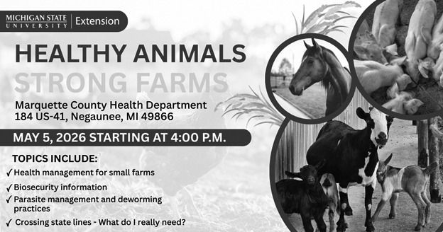 Keeping animals healthy doesn’t just protect one farm–it helps protect neighboring farms, rural communities and the future of Michigan agriculture. By attending these trainings and using the available resources, you can play an important role in helping Upper Peninsula farms stay healthy, resilient and productive for years to come.