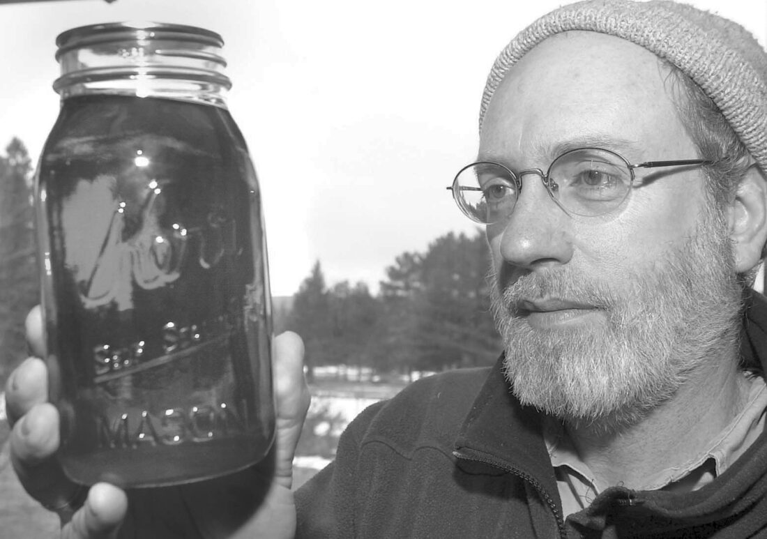 A maple syrup producer inspects a quart of amber-colored maple syrup boiled down from sap collected from sugar maples on his property near Big Bay some years ago. (Journal file photo)