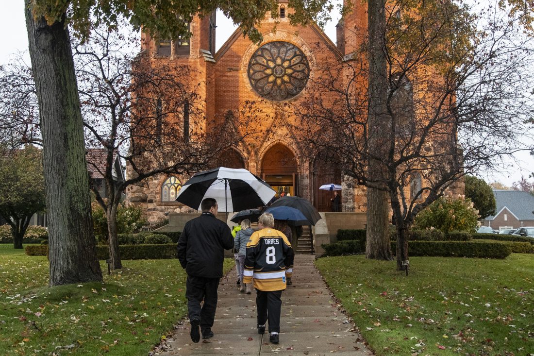 On Wednesday, more than 700 people packed St. Paul Catholic Church in Grosse Pointe for a prayer service, some of whom wore hockey jerseys to symbolize the boys’ love for the sport. Two jerseys bearing the boys’ names were propped up by hockey sticks on the church’s alter.