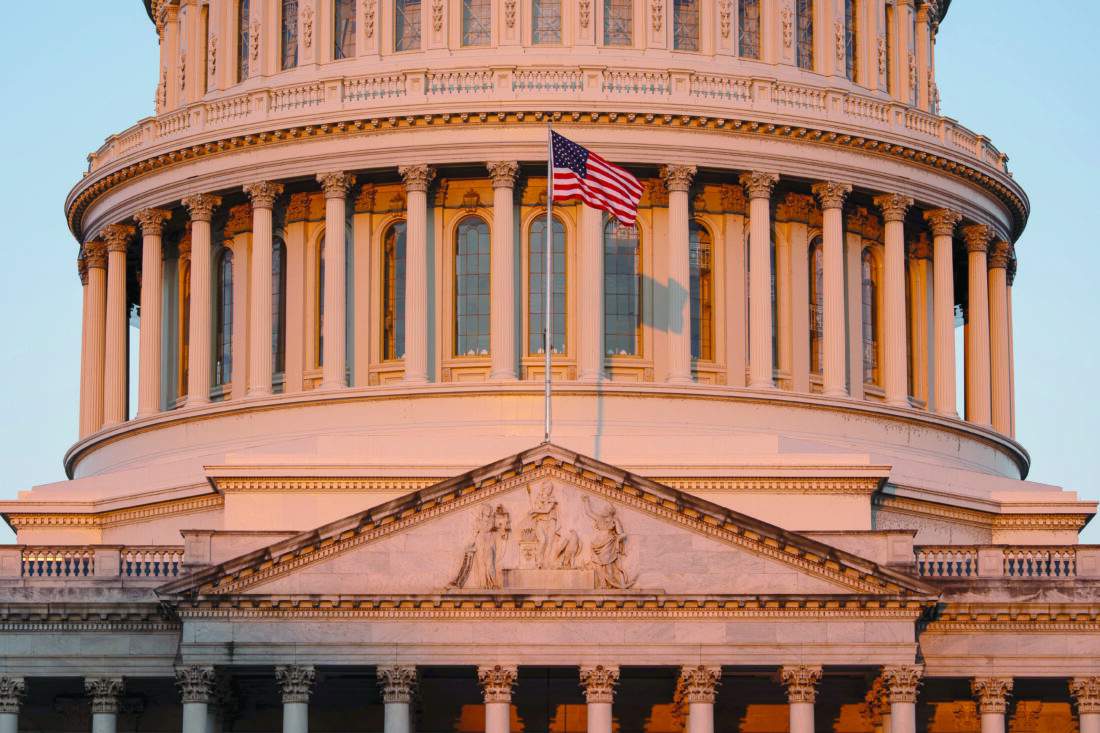 The Capitol is illuminated at dawn in Washington on Monday. (AP photo)