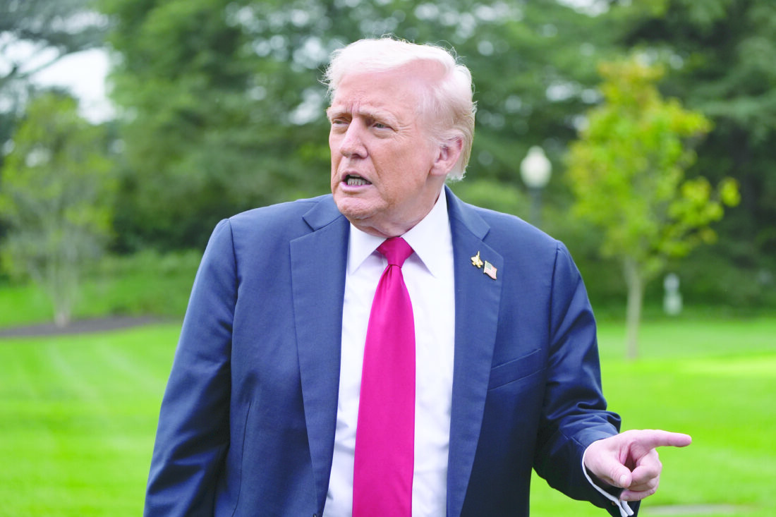 President Donald Trump speaks with reporters as he walks from Marine One after arriving on the South Lawn of the White House on Sept. 30 in Washington. (AP photo)
