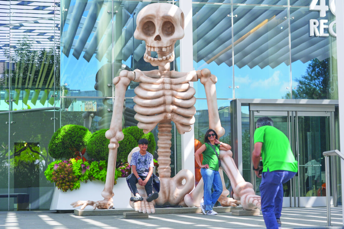 Sam Desai, right, takes a Halloween-themed photo of his wife, Sonia Desai, and son, Rishan Desai, in downtown Dallas on Sept. 27. (AP photo)