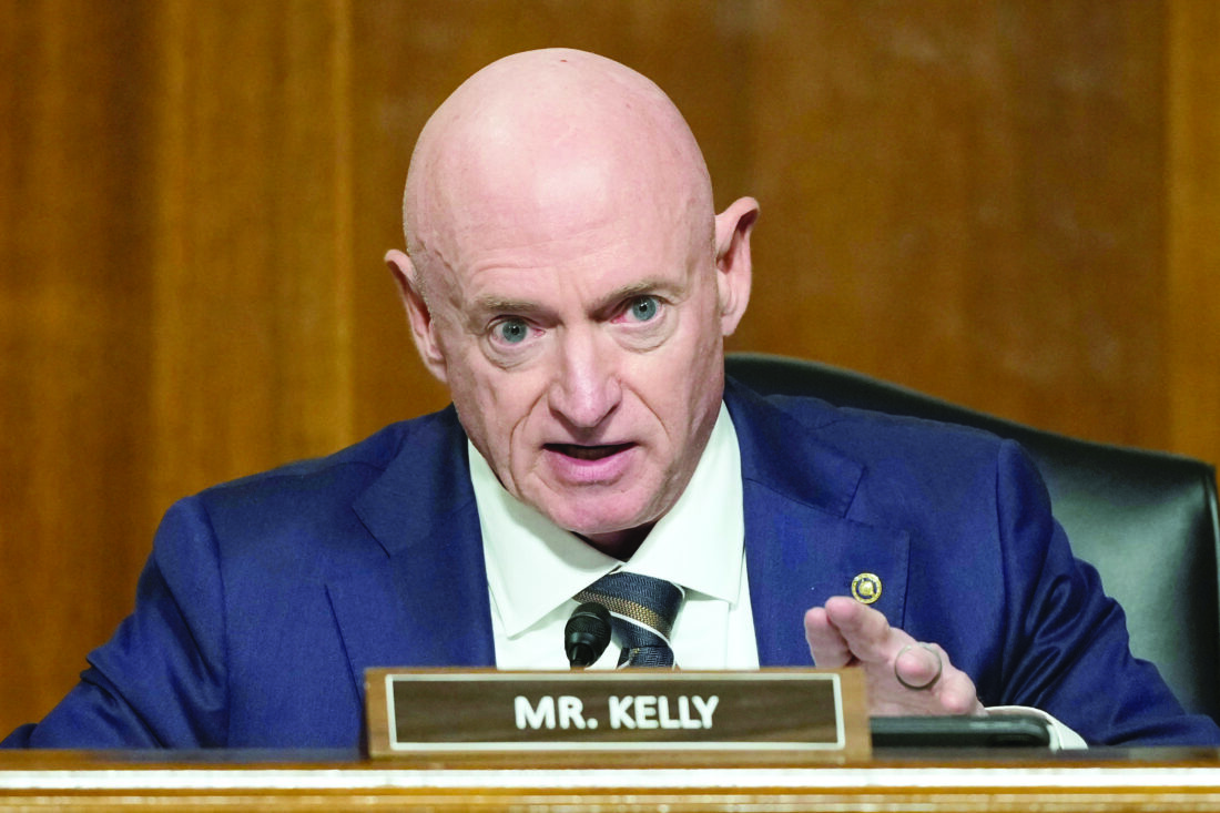Sen. Mark Kelly, D-Ariz., speaks during the Senate Armed Services Committee confirmation hearing for Pete Hegseth, President-elect Donald Trump's choice to be Defense secretary, at the Capitol in Washington on Jan. 14. (AP photo)