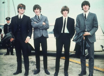 The Beatles, from left, John Lennon, George Harrison, Ringo Starr and Paul McCartney arrive in Liverpool, England, on July 10, 1964. (AP photo)