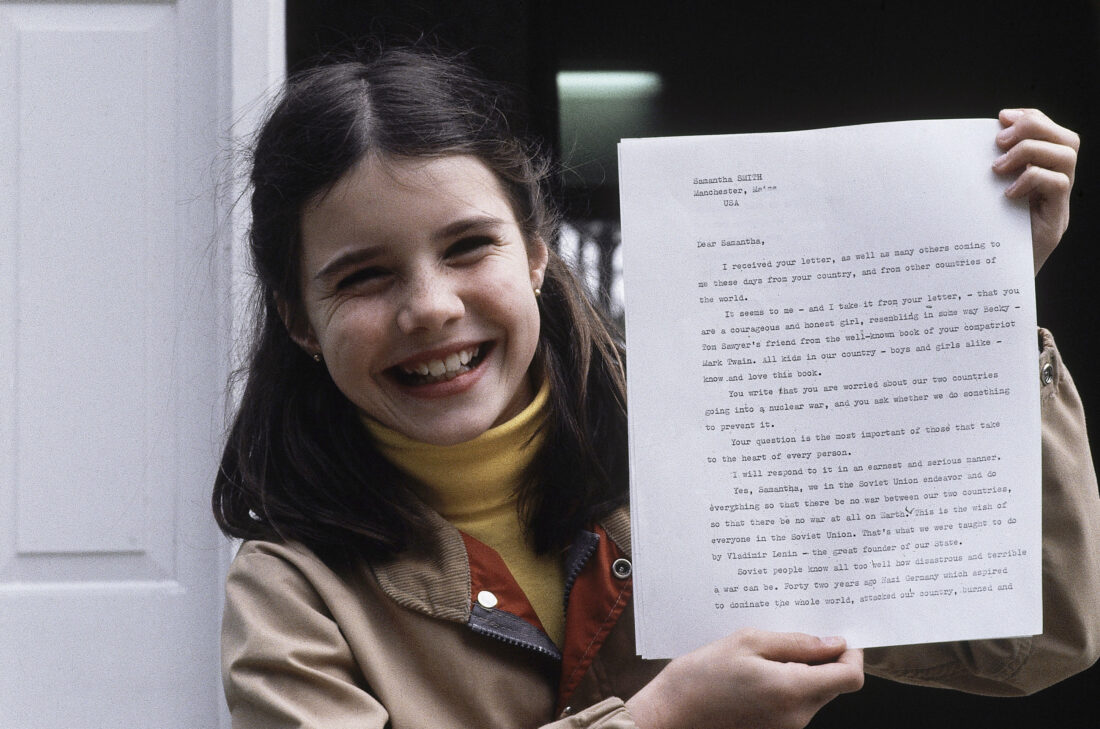 Samantha Smith, of Manchester, Maine, holds letter she received from Soviet leader Yuri Andropov on April 26, 1983 in Manchester, Maine. (AP Photo/Patricia Wellenbach)