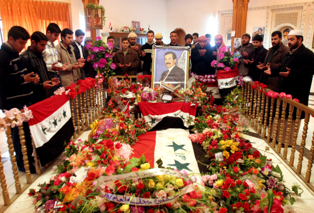 Iraqis pray over the grave of a deposed Iraqi leader Saddam Hussein in Ouja, Iraq, 130 kilometers (80 miles) north of Baghdad, Saturday Jan. 20, 2007. Saddam Hussein was executed on December 30, 2006. (AP Photo/Bassem Daham)