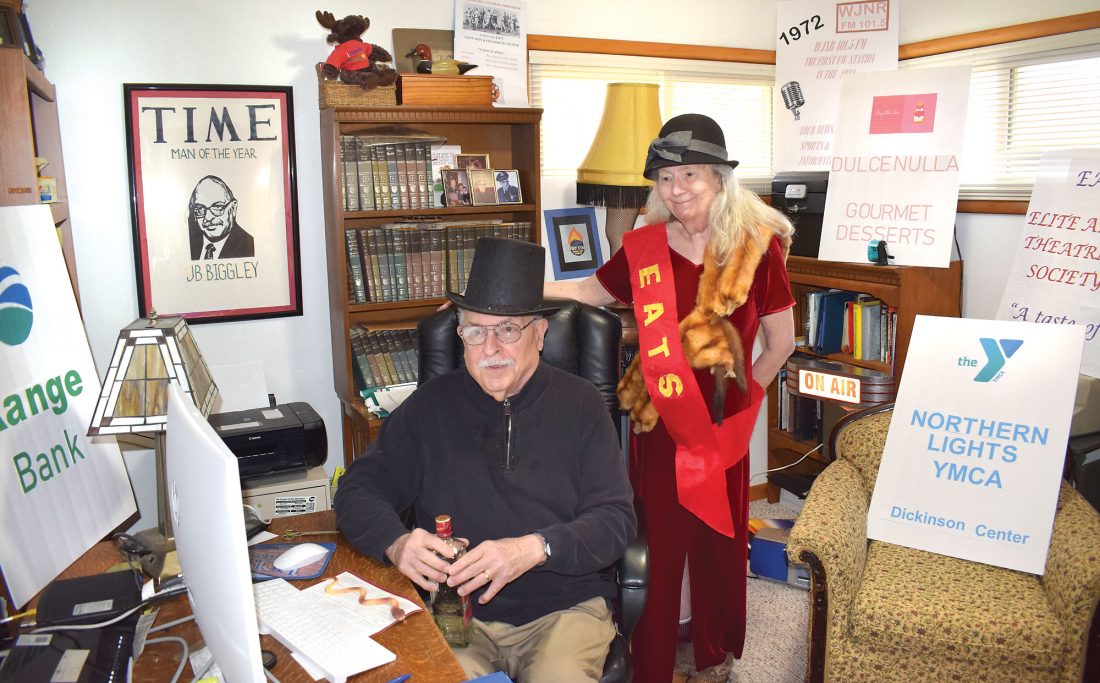 The Dickinson County Community Theatre will present “A Radio Host and Vaudeville Ghosts” at 7 p.m. March 28 at the Braumart Theatre in Iron Mountain. Mark Miller and his wife, Jan, are shown as they rehearse with other cast members via Zoom. This is the DCCT’s first live performance in more than a year. (Terri Castelaz/Daily News photo)