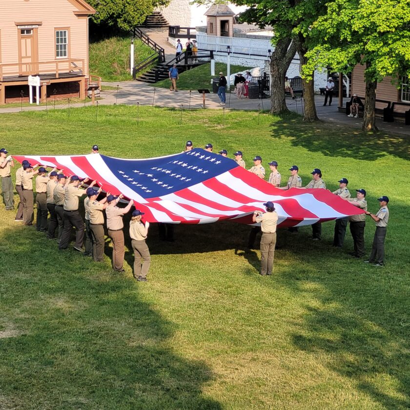 Caleb Rayhorn of Troop 302 in Marquette and Jacob Deatrick of Gwinn recently spent a week with the Upper Peninsula Troop at the Mackinac Island Scout Service Camp. Daily, the Scouts raise and lower 22 flags in the state park and act as guides at the historic sites. They stay in the Scout Barracks behind the fort. During off hours, there are many activities including bicycling, kickball, tennis, chess, and visiting the fudge and ice cream shops. The program began in 1929. Former President Gerald Ford was among the original participants. It operates for 14 weeks during the summer with Boy Scout and Girl Scout councils throughout the State of Michigan supplying troops. Pictured are Caleb (left) and Jacob in front of the Scout Barracks and