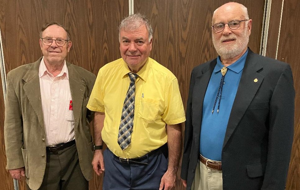 Clyde Morgan of Negaunee (right), former Area 3 Vice President, conducted the installation of state officers. Joe DeSira of Lansing (center) is the Michigan Federation president.