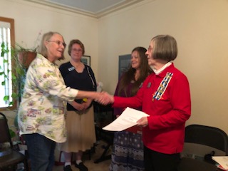 At their recent anniversary luncheon, the Onagomigkway Chapter National Society Daughters of the American Revolution had the pleasure of installing a new member. Martha Harding is from Menominee and traces her ancestry back a patriot in the American Revolution. Chaplain Keitha Callanan of Marquette welcomes Harding after performing the ceremony while Regent Melissa Wilson of Marquette and Registrar Treasa Sowa of Munising look on. Interested in learning about the chapter? Visit http://park6.michdar.net/ The Onagoingkway Chapter serves the western half of the Upper Peninsula.