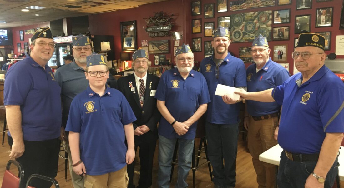 Iron River/Stambaugh Reino Squadron #21 did a raffle and fundraiser for the Upper Peninsula Honor Flight recently and were able to contribute over $650. State of Michigan commander John Beeman accepted the check on behalf of the Honor Flight from Legion Duel member Bob Gallup who made a very special American Legion clock made out of carved white pine, Michigans state tree, that was raffled off. In the photo, from left, is John Brunswick, Jerry Williams, Little Guy in front, Kevin Brunswick, Commander Beeman Butch Testini, Danny Fitzpatrick, Dick Reynolds and Legion Duel Member Bob Gallup.