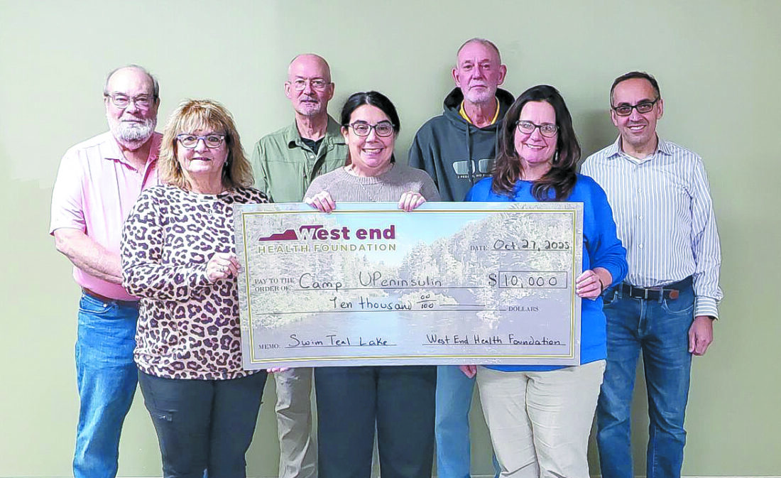 ISHPEMING — The West End Health Foundation presented Camp UPeninsulin with a grant check on Oct. 27, for its Special Grant Cycle. As part of this initiative, WEHF matched all donations raised by swimmers. The total amount matched reached $10,000.