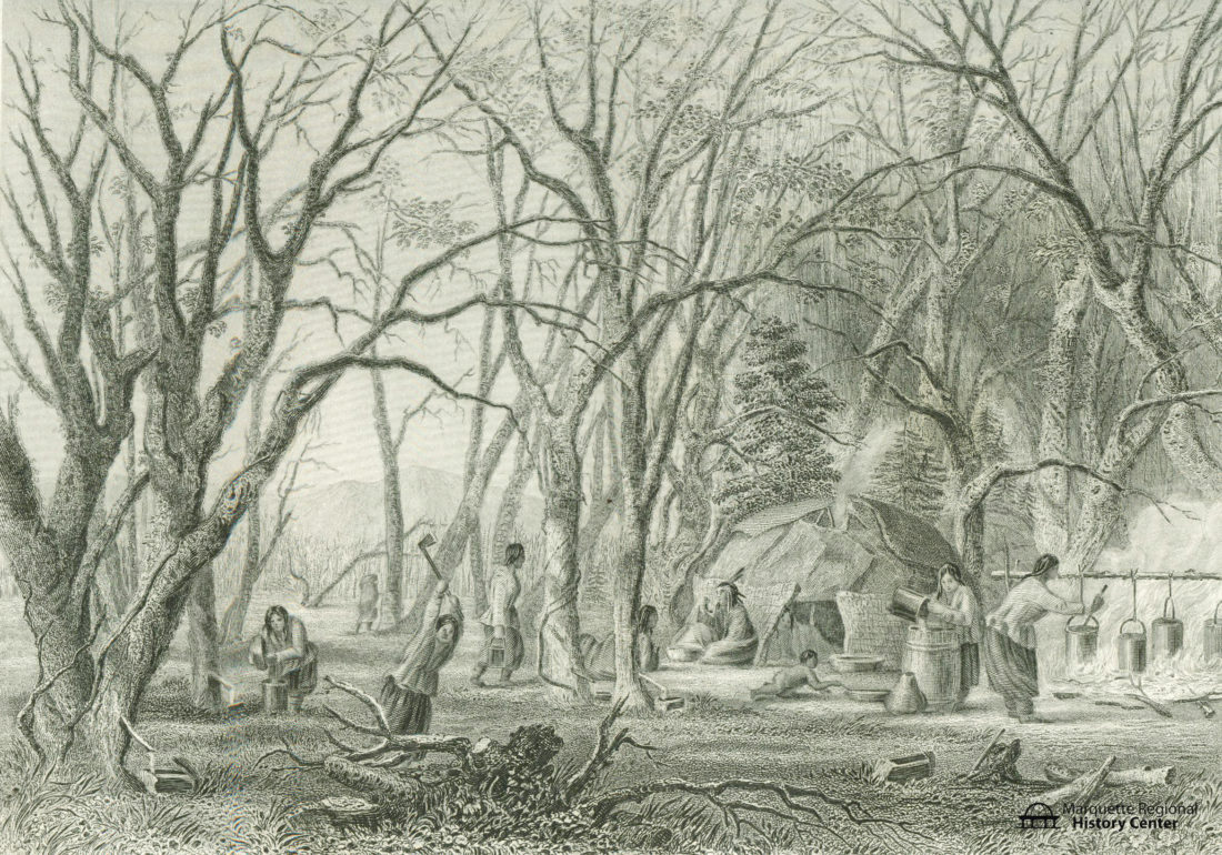 A Native American maple syrup camp is seen. (Photo courtesy of the Marquette Regional History Center)