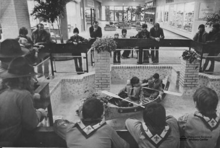 - A Boy Scout demonstration is held in the fountain at the Marquette Mall in this file photo. (Photo courtesy of the Marquette Regional History Center)