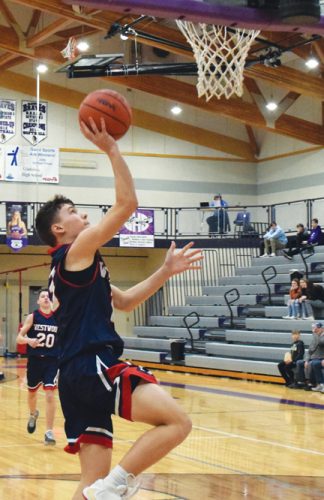Westwood’s Marcus Boase shoots a layup against Gladstone on Monday at the Braves’ gym. (Escanaba Daily Press photo by Justin St. Ours)