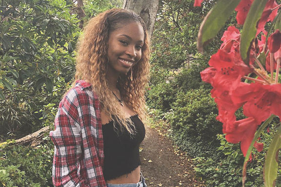 Former Oregon State volleyball player Kyla Waiters poses for a photo near Corvallis, Ore., in July 2018, shortly before entering college. (Dorina Waiters via AP)