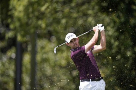 - Patrick Cantlay hits from the second tee during the first round of the Tour Championship golf tournament on Thursday at East Lake Golf Club in Atlanta. (AP photo)