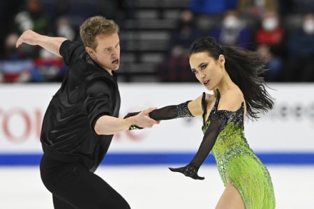 - Madison Chock and Evan Bates compete in the rhythm dance program during the U.S. Figure Skating Championships on Friday in Nashville, Tenn. (AP photo)