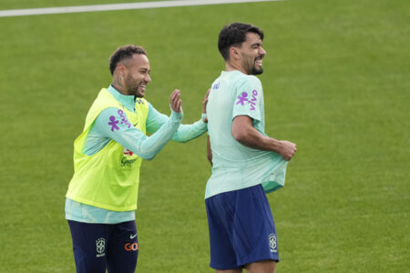 - Brazil’s Neymar, left, warms up with his teammate Paqueta during a training session at the Continassa sporting center, in Turin, Italy, on Tuesday. Brazil will compete in Group G at the 2022 FIFA World Cup. (AP photo)