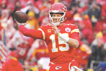 - Chiefs quarterback Patrick Mahomes warms up prior prior to an NFL divisional playoff game against the Jacksonville Jaguars on Saturday in Kansas City, Mo. (AP photo)