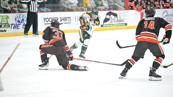 But BG reassumed the lead just 15 seconds later when Nathan Burke took a shot that deflected off a Wildcat skater’s stick in front of the net and past Halasz.