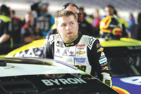 - William Byron looks while climbing out of his car during qualifying for the Daytona 500 on Feb. 15 at Daytona International Speedway in Daytona Beach, Fla. (AP file photo)