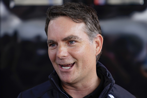 - Former NASCAR driver Jeff Gordon speaks at a news conference outside a Hendrick Motorsports trailer before auto races at Pocono Raceway on June 27, 2021, in Long Pond, Pa. (AP file photo)