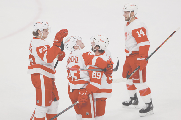 Raymond joined DeBrincat and Larkin on the Red Wings’ top line Saturday.