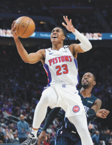 - Pistons guard Jaden Ivey, front, makes a layup during the first half on Oct. 19, 2022, in Detroit. (AP file photo)
