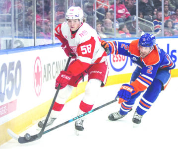 Red Wings left wing Lucas Raymond skates against the Tampa Bay Lightning during the third period on Jan. 25 in Detroit. (AP file photo)
