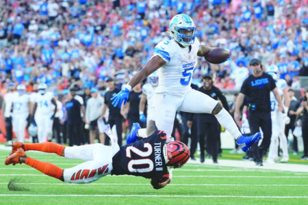 But Jared Goff is having a hard time getting the ball to Williams this season. Against the Bengals, he only had two touches — a 9-yard catch and a 1-yard run — and he only has 11 catches this season. After scoring eight times last year, Williams has only one touchdown in 2025.