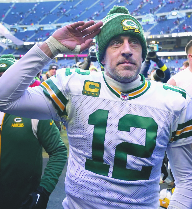 The Green Bay Packers' Aaron Rodgers salutes fans after a game against the Bears on Dec. 4, 2022, in Chicago. (AP file photo)