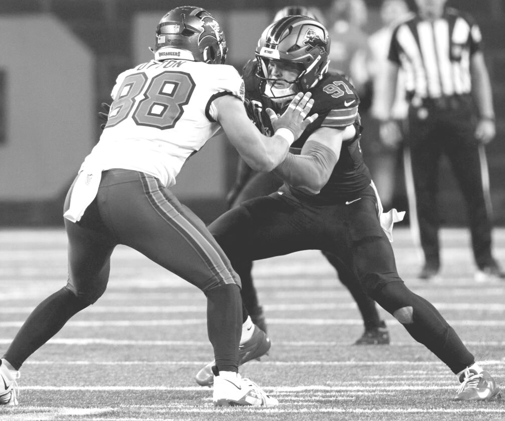 He made the Pro Bowl in 2023 and had 7 1/2 sacks in five games last year before breaking his leg in two places. He has six sacks in seven games in 2025 and leads the league in pressures generated (48), quarterback hurries (33) and strip-sacks (three) while also tying for the most forced fumbles (four) this season.