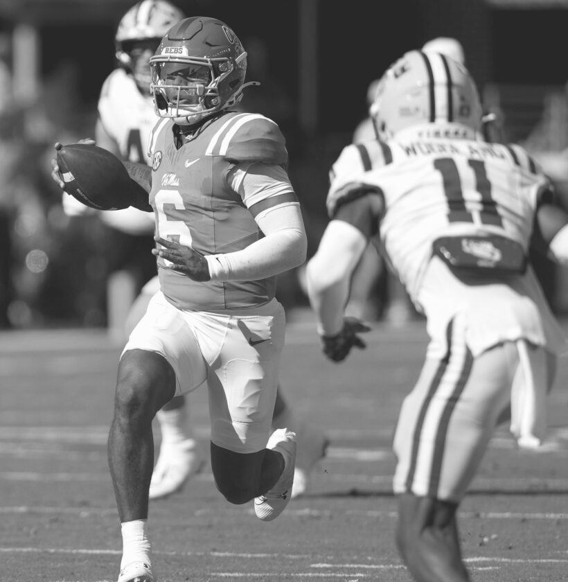 Stepping in after Austin Simmons was injured in Ole Miss’ SEC opener at Kentucky, Chambliss is slated to make his fourth consecutive start. He has passed for more than 1,000 yards and helped the Rebels score 110 points in three victories.