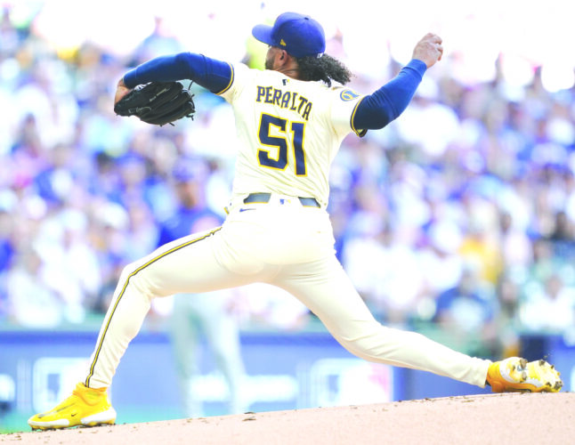 Milwaukee Brewers pitcher Freddy Peralta throws during the first inning in Game 1 of a National League Division Series against the Chicago Cubs on Oct. 4 in Milwaukee. (AP file photo)