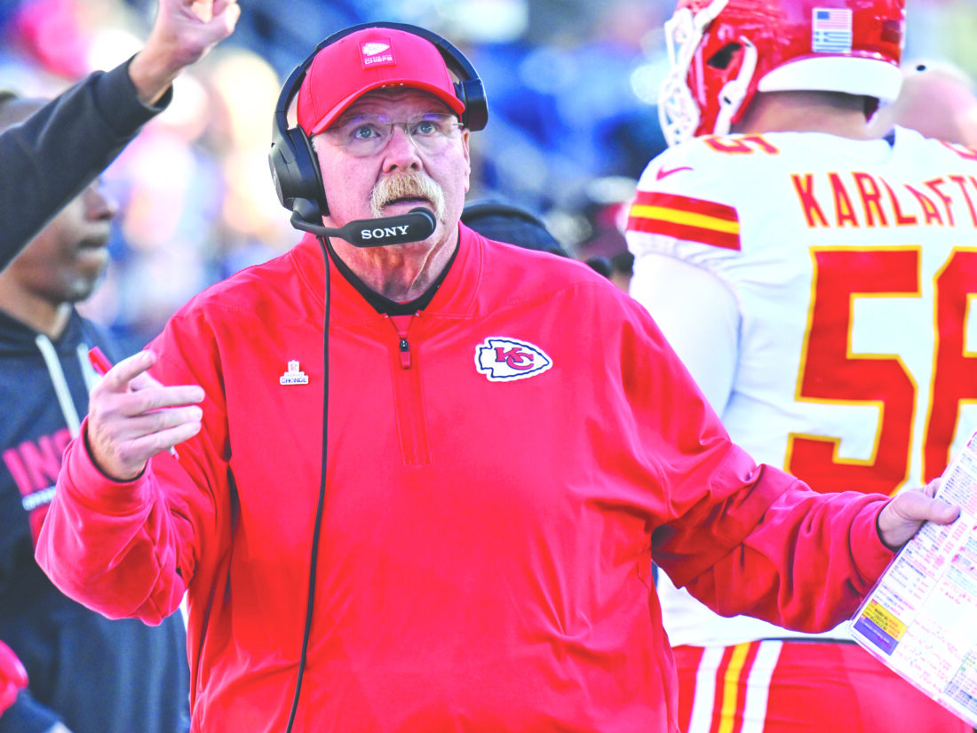 Kansas City Chiefs head coach Andy Reid watches during the second half against the Tennessee Titans on Dec. 21 in Nashville, Tenn. (AP photo)