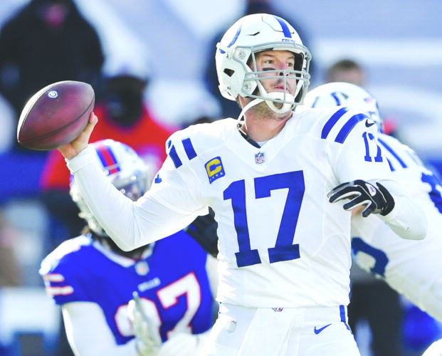 Indianapolis Colts quarterback Philip Rivers throws a pass during the first half of an NFL wild-card playoff game against the Buffalo Bills on Jan. 9, 2021, in Orchard Park, N.Y. (AP file photo)