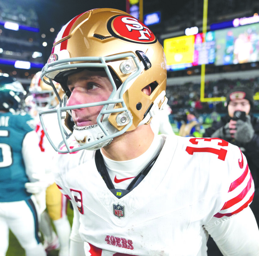 San Francisco 49ers quarterback Brock Purdy looks on following an NFL wild-card playoff game against the Eagles on Sunday in Philadelphia. (AP photo)