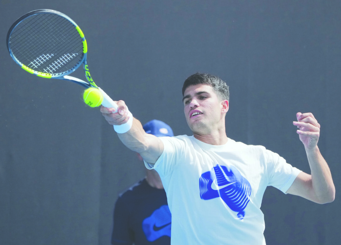 Carlos Alcaraz practices ahead of the Australian Open in Melbourne, Australia, on Thursday. (AP photo)