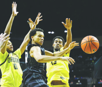 The Ducks were without two of their biggest playmakers. Senior center Nate Bittle was sidelined after injuring his ankle in a 90-55 loss at Nebraska last week. The 7-footer, who was averaging 16.3 points, is expected to be out for a month.