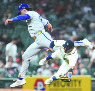 Just 55 seconds into the game, Green fell into the courtside seats along a sideline — coming back to fist bump everybody he’d fallen upon.