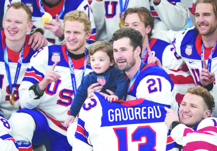 MILAN — Johnny Gaudreau’s No. 13 jersey was hanging in the U.S. locker room throughout the Olympics, and Dylan Larkin and Matthew Tkachuk carried it around the ice after the U.S. beat Canada in overtime to win the country’s first gold medal at the Games since 1980.