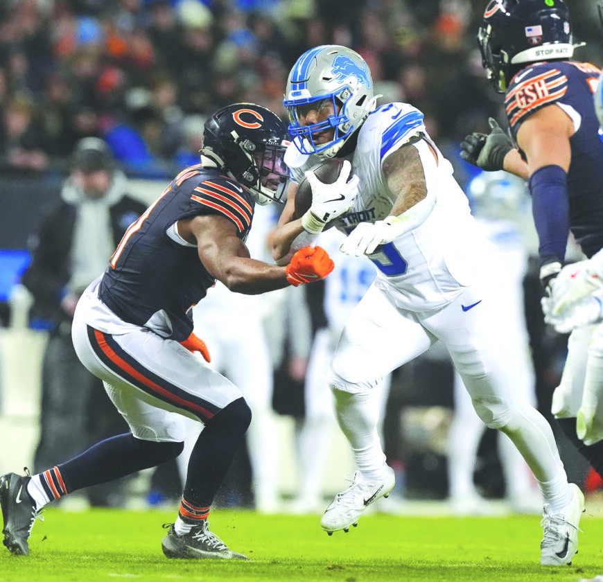 Detroit Lions running back David Montgomery, right, runs up field during the second half against the Bears on Jan. 4 in Chicago. (AP file photo)