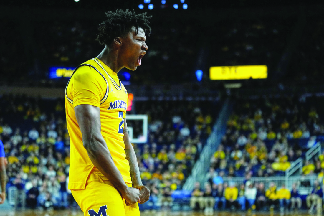 Michigan guard L.J. Cason reacts after drawing an and-one foul during the first half of an NCAA college basketball game against McNeese on Dec. 29 in Ann Arbor. (AP photo)