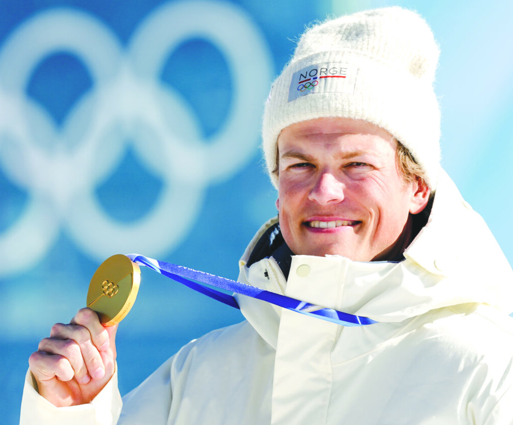 Johannes Hoesflot Klaebo of Norway poses after winning the gold medal in the cross country skiing men's 10km interval start at the 2026 Winter Olympics in Tesero, Italy, on Friday. (AP photo)