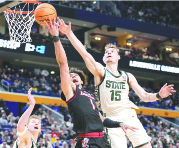 Michigan State used a 17-5 spurt to take a 10-point lead on Carson Cooper’s 3-pointer midway through the first half. Louisville got within a basket twice after that but never evened the score. When the Cardinals cut the lead to 50-47 with 12 minutes remaining, Fears had three assists and a basket during a 13-3 run that put the Spartans back up by double digits.