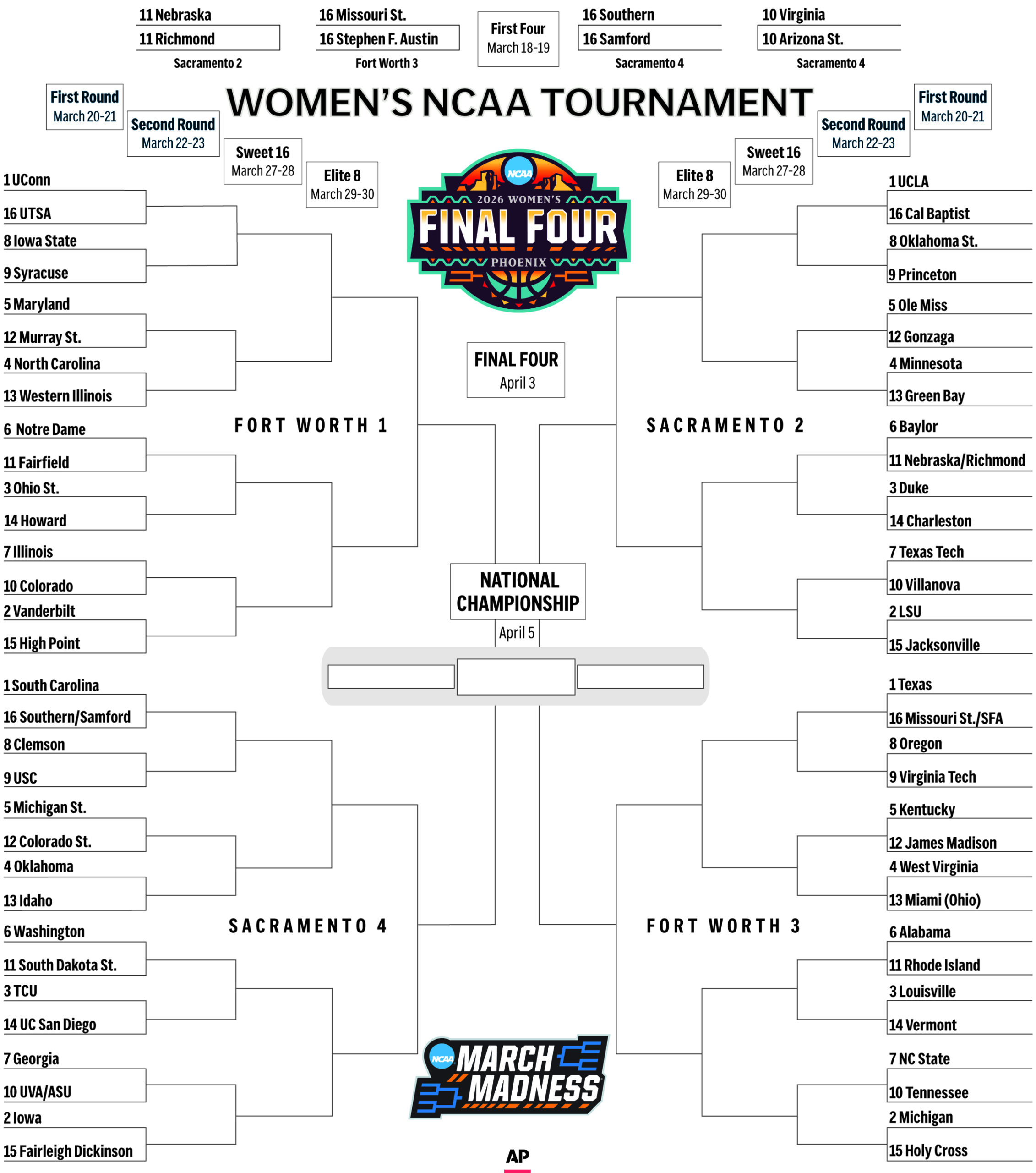 AP NCCA BRACKET WOMEN NewsletterToday's breaking news and more in your inboxEmail(Required) I'm interested in (please check all that apply)(Required) Daily Newsletter Breaking News Obituaries Are you a paying subscriber to the newspaper?(Required) Yes No